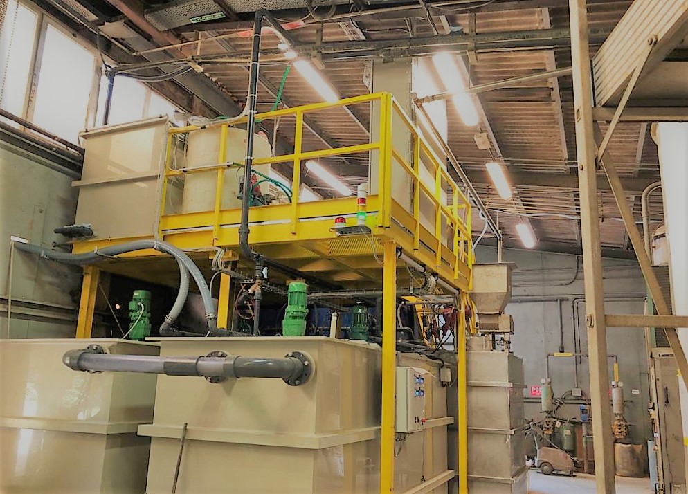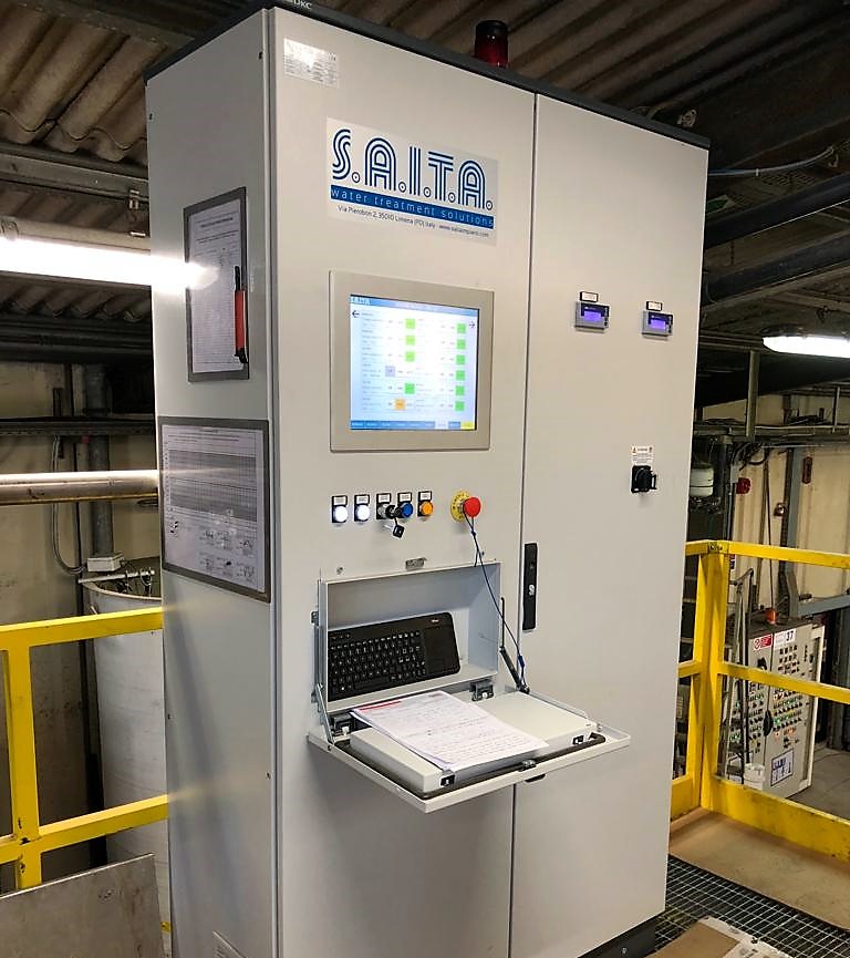 New water treatment and recycling plant for effluents of welding wire production. The plant is designed to recycle more than 75% of the treated water thanks to the chemical-physical Desulfate process. The treated water is recycled as rinse water in the production machines.