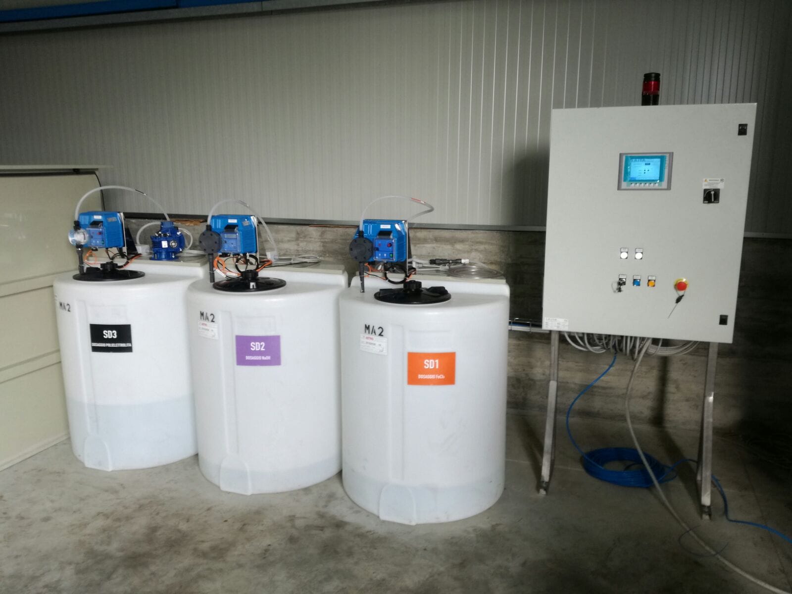 Impianto di trattamento acque reflue di tipo chimico-fisico (serie CF) per l’abbattimento di metalli disciolti da acque di prima pioggia.
